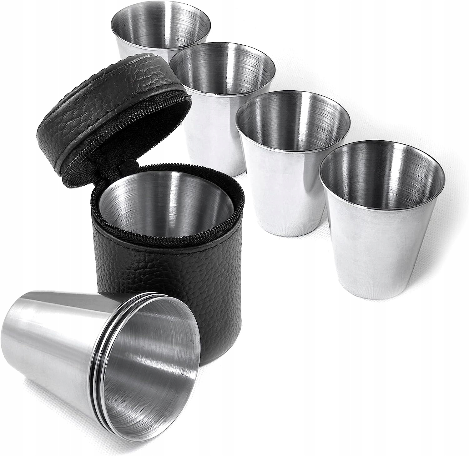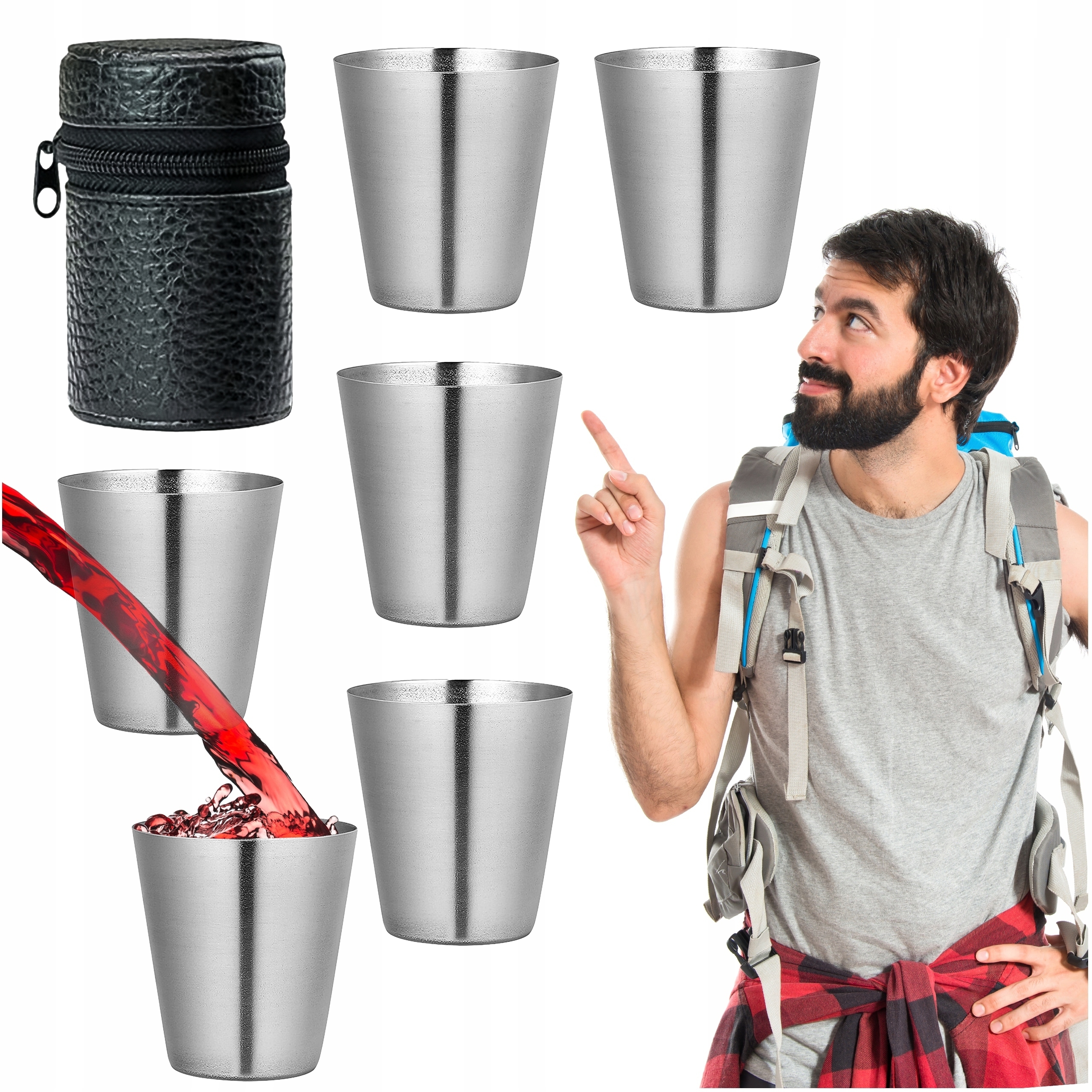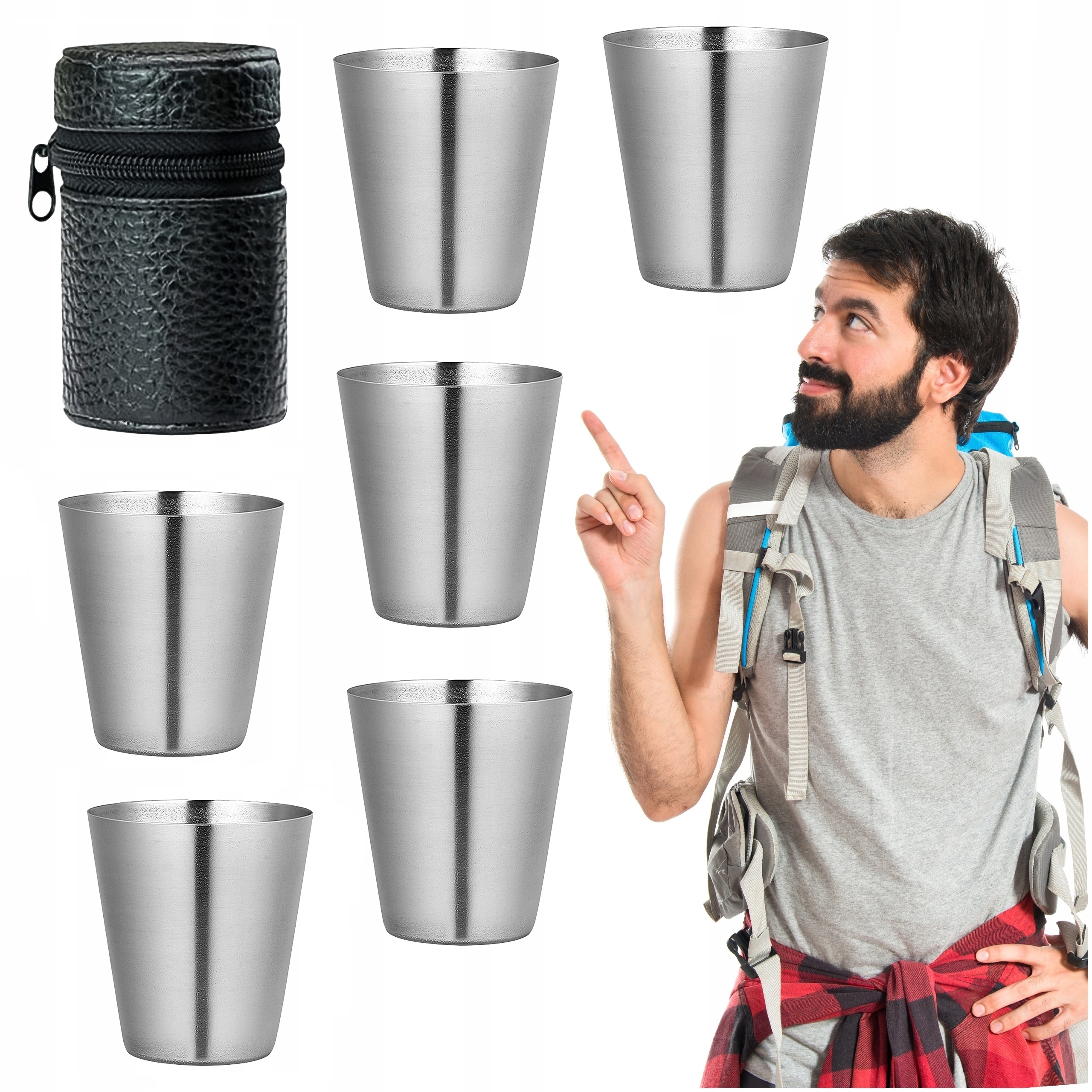 Zestaw 6 kieliszków o pojemności 30 ml każdy jest spakowany w bardzo praktyczne etui z ekoskóry! Kieliszki wykonane zostały z wysokiej jakości stali nierdzewnej, dzięki czemu posłużą nam przez całe wieki i przeleją przez siebie morze napitków... W komplecie estetyczne, zamykane na zamek błyskawiczny etui z ekoskóry, dzięki czemu możemy łatwo zabrać całość w każdą podróż. Są bardzo łatwe w czyszczeniu i przechowywaniu. Taki zestaw "naczyń" powinien być nieodzownym elementem wyposażenia każdego biwakowicza, turysty i podróżnika. Dzięki zestawowi aż 6 sztuk zawsze będziesz miał odpowiednią ilość kieliszków dla swojej grupy. W porównaniu do jednorazowych kieliszków, nasz produkt jest wyborem promującym ochronę środowiska.