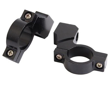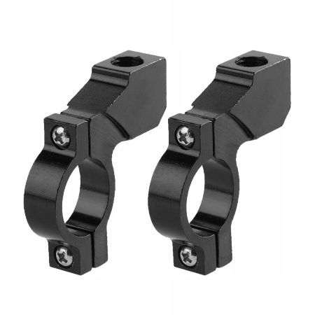 Uchwyty mają zastosowanie jako mocowania lusterek bocznych na kierownicy motocykla (i każdego innego jednośladu), ale także mogą pełnić rolę obejmy na gmole (różnego rodzaju akcesoria ochronne dla motocykli). Są bardzo łatwe w montażu. Pasują do wszystkich lusterek mocowanych śrubą 10 mm z gwintem prawoskrętnym.